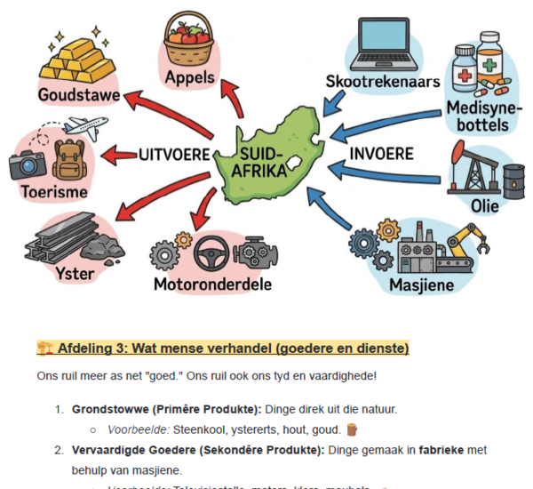 Sosiale Wetenskappe: Geografie – Handel, ruilhandel, invoere/uitvoere en billike handel.