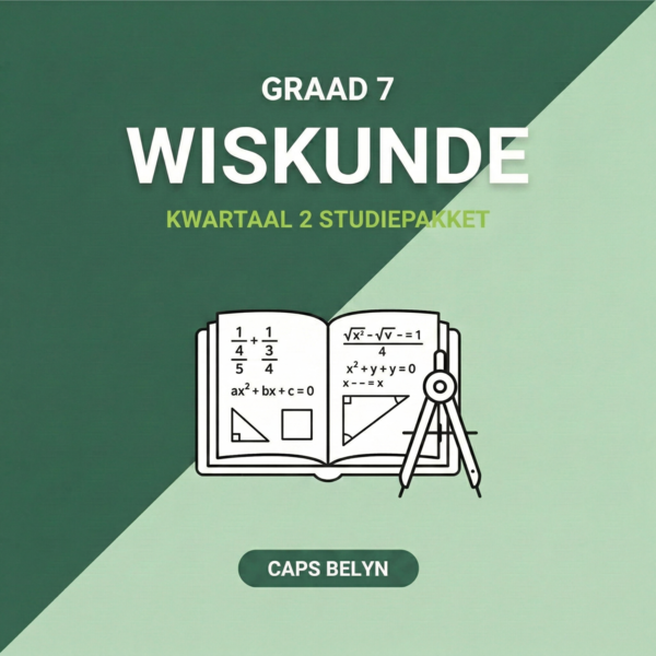 Help jou kind om Wiskunde met selfvertroue te bemeester! Hierdie omvattende digitale studiegids is spesifiek saamgestel volgens die Suid-Afrikaanse CAPS-kurrikulum en dek al die deurslaggewende konsepte vir Graad 7, Kwartaal 2.