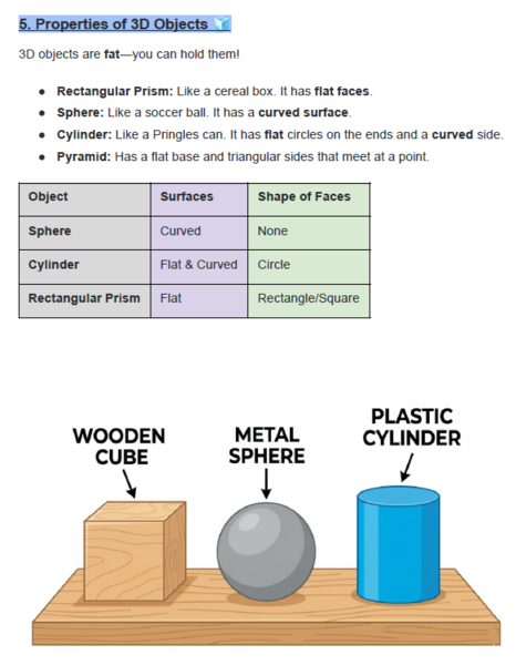 Mathematics: Division techniques (Dechunking & Bus Stop method), numeric/geometric patterns, 2D shapes, symmetry, and 3D objects.