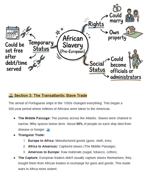 Social Sciences (History): West Africa before the slave trade, the Transatlantic Slave Trade, and the leaders of the resistance.