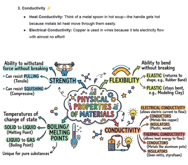 Topic 1: Properties of Materials – Key definitions, boiling/melting points, and conductivity.